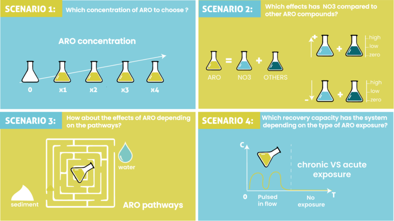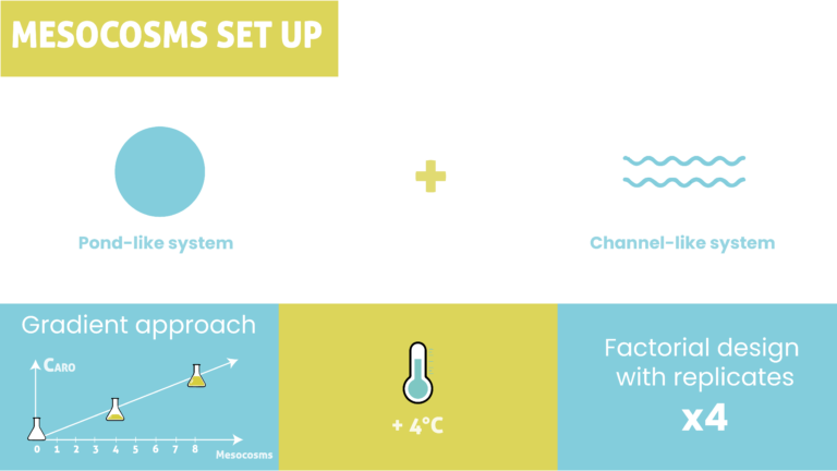 Despite numerous studies, researchers have not well considered the whole complexity of these habitats so far. Most studies primarily focused on either ecotoxicological approaches or functional community/ecosystem approaches. In other words, the overall impacts on species, communities and ecosystem processes are not very well understood and, therefore, can hardly be predicted. To achieve their objectives, CLIMSHIFT researchers will develop an unprecedented approach by combining ecotoxicological stress indicators (e.g. growth and biomarkers of the different organisms) and functional community/ecosystem approaches (e.g. biotic interactions, population dynamics, ecosystem metabolism and dynamics) at different temporal and spatial scales. To do so, the researchers will first investigate 4 different scenarios using microcosm approaches – namely simplified ecosystems imitating natural ones under controlled conditions. Once done, the second stage will consist in upscaling these experiments under outdoor mesocosm conditions to be closer to what happens in natural environments. Finally, the scientists will benefit from these data to develop an innovative and informative model, which will allow them to simulate other scenarios, and thus predict potential stressor interactions.